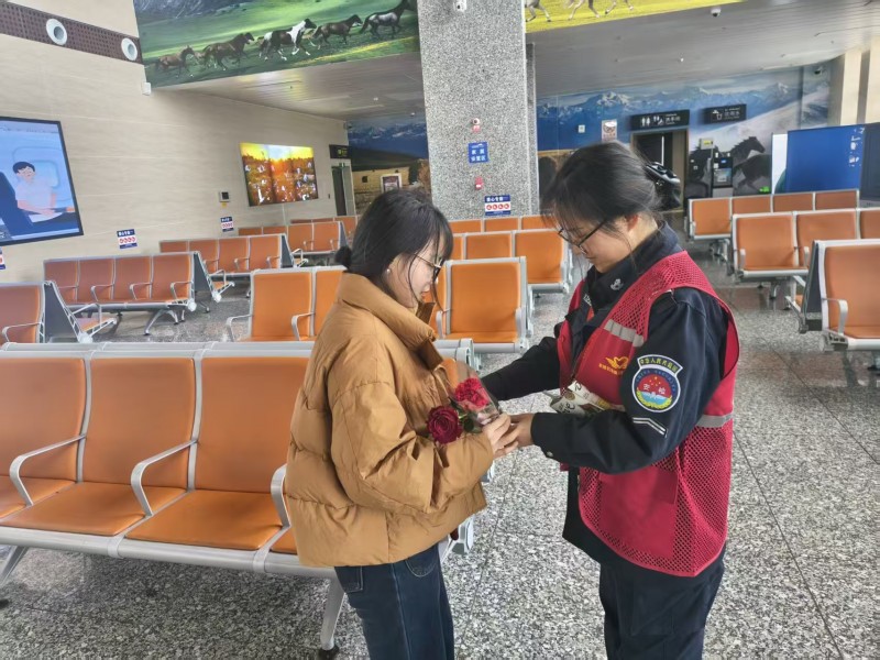 情暖三八节 花香伴旅途——昭苏天马机场安全检查站开展妇女节暖心活动
